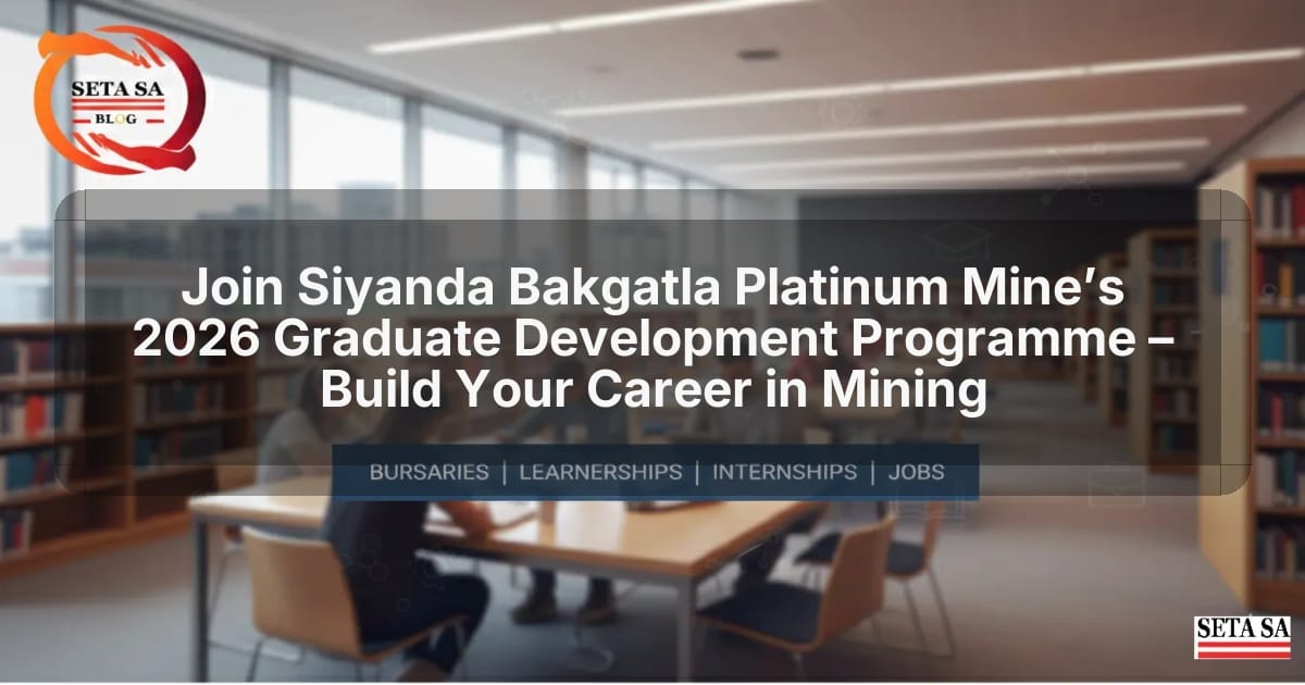 The Siyanda Bakgatla Platinum Mine Graduate Development Programme 2026 is a paid, structured training opportunity for graduates in Metallurgy and Chemical Engineering. It places you in real mining settings, teaches you safety, teamwork and problem‑solving, and prepares you for a long‑term career in the mining industry.